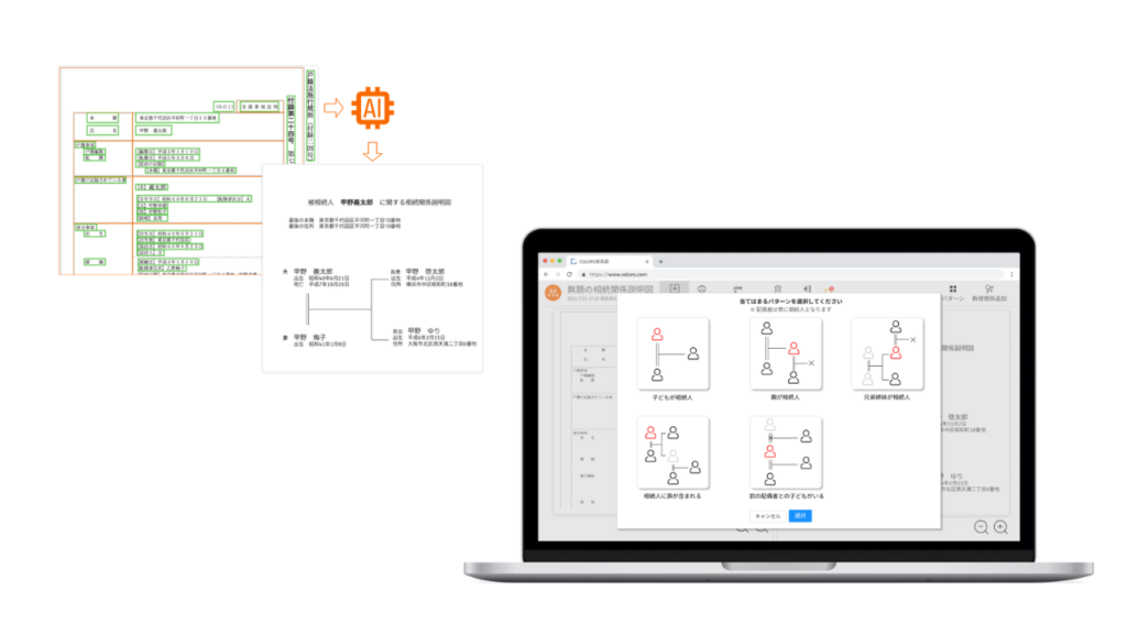今回、バイタリフィアジアへは戸籍謄本をAI-OCRで読み取り、自動で家系図を作成するアプリケーション「らくらく相続図」の開発を依頼しました。